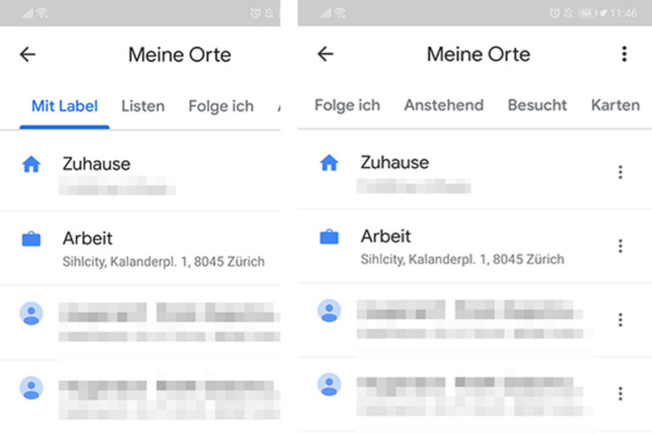 Nun öffnest du das menü mit den drei waagerechten strichen und wählst meine orte mit label aus. Gib eine adresse oder eine sehenswürdigkeit ein und tippe sie dann in den suchergebnissen an.